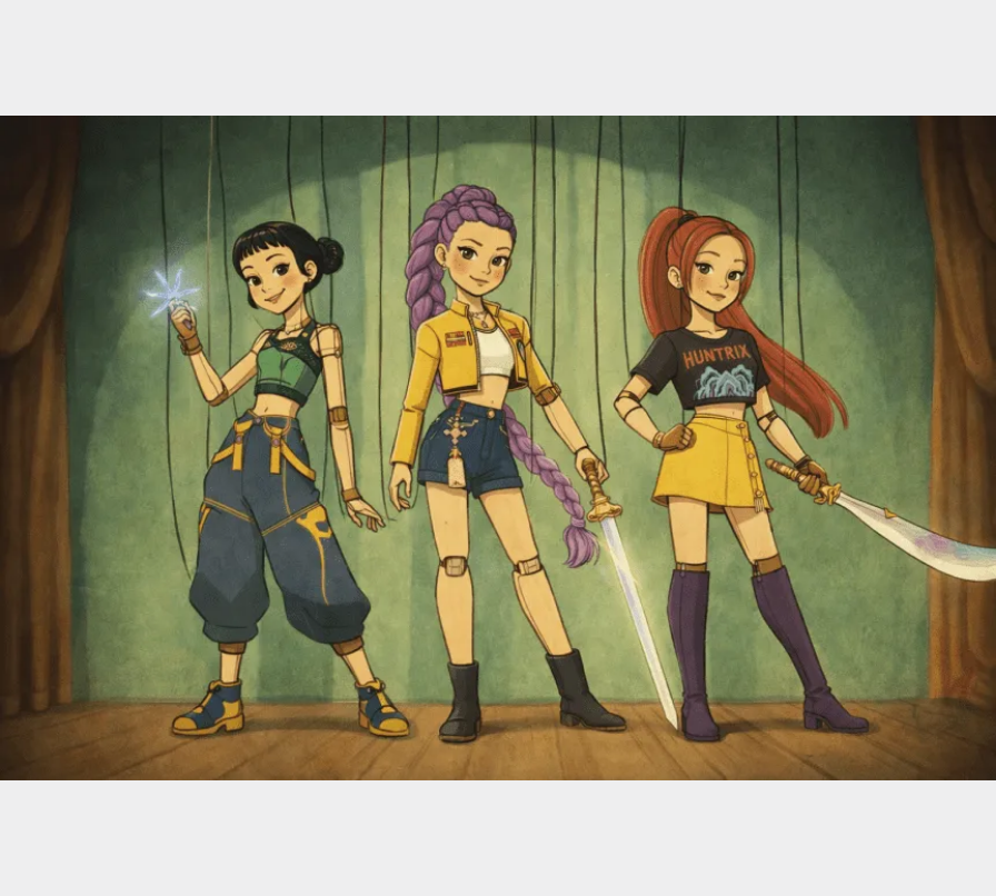 Una creación generada por inteligencia artificial ha combinado la imagen del grupo musical surcoreano Las Guerreras con la estética visual del universo de Pinocho, transformándolas en personajes con apariencia de títeres de madera.